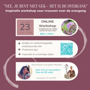 Aanmelden ONLINE Inspiratie workshop(s) voor vrouwen over de overgang